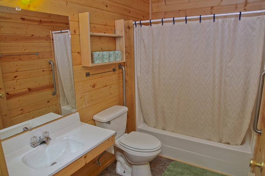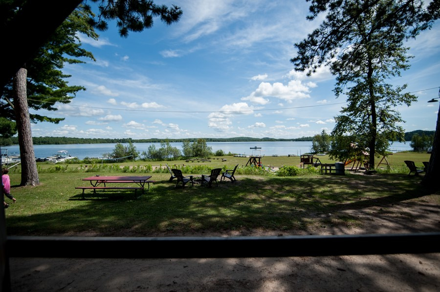 Large 2 bedroom; 1 queen, 1 double, 1 twin plus 2 futons. Dishwasher. Great view. Spacious! Large deck overlooking lake. Tub & shower. Rate based on 4, max occupancy 7.